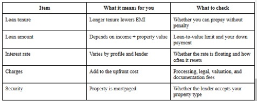 Transparent charges: Ask for a full list—processing fee, legal/valuation fees, stamp duty, and any service charges.
